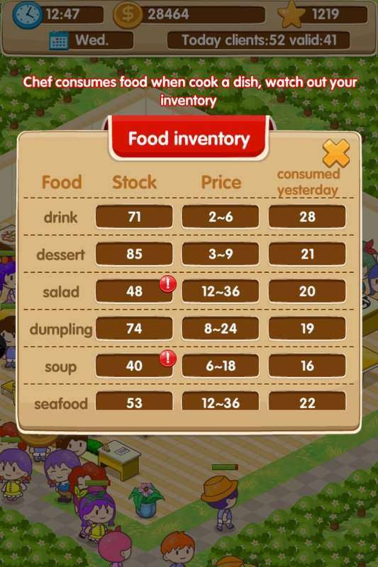 扩大饭店的面积。点击空的货架系统就会自动的吧货架上货物补满。顾客的满意度至关重要,每个顾客的耐心都是有限的。