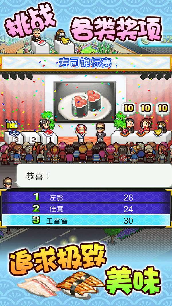 《海鲜寿司物语》是一款经典的像素风格的模拟经营类游戏,游戏里不仅能制作普通的寿司,还能根据自己喜好尝试各种组合,做出自己的原创寿司,快来下载海鲜寿司物语,制作自己独门的寿司吧!