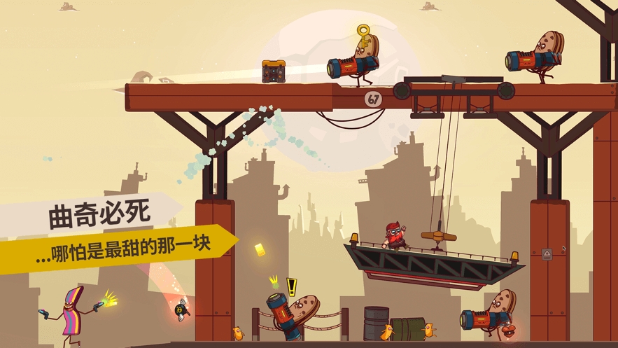 2、场景的打造要很有意思,适用了很多的动漫中的夸张手法去给你们打造出来了一个紧张刺激的战场。