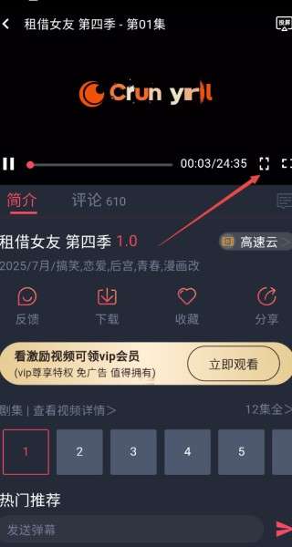 2、进入到动漫播放界面,我们切换到竖屏播放模式。