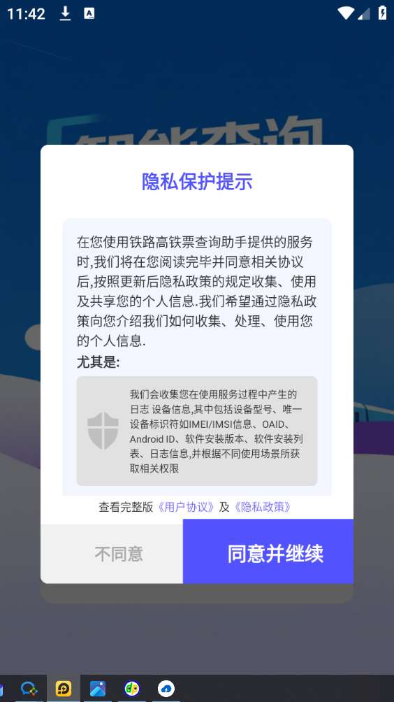 1、首先,打开软件阅读“隐私保护提示”的内容,然后点击“同意并继续”按钮进入程序。