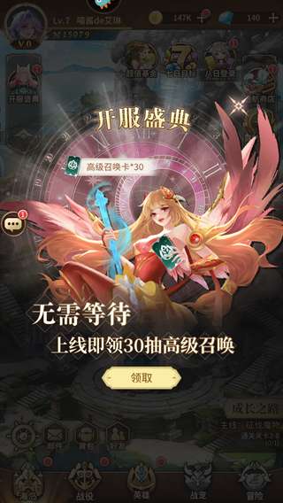 1、开服庆典送30抽。