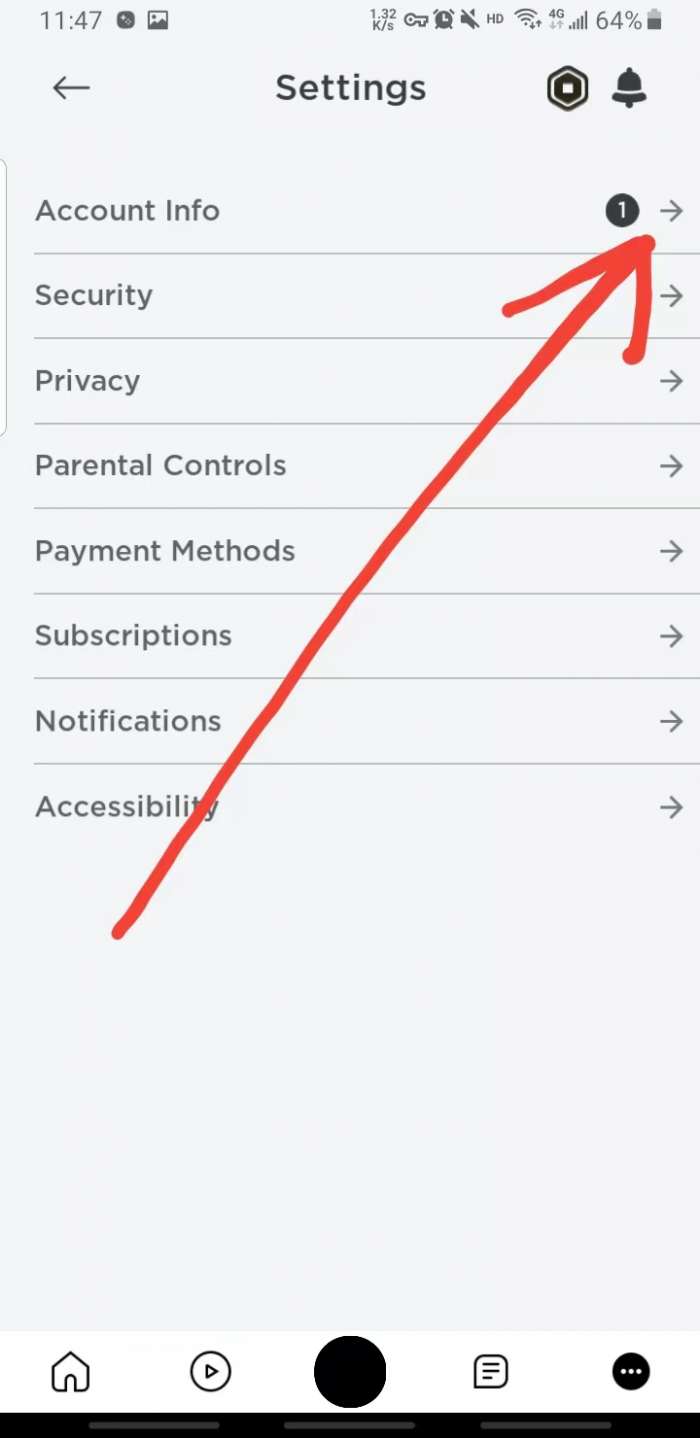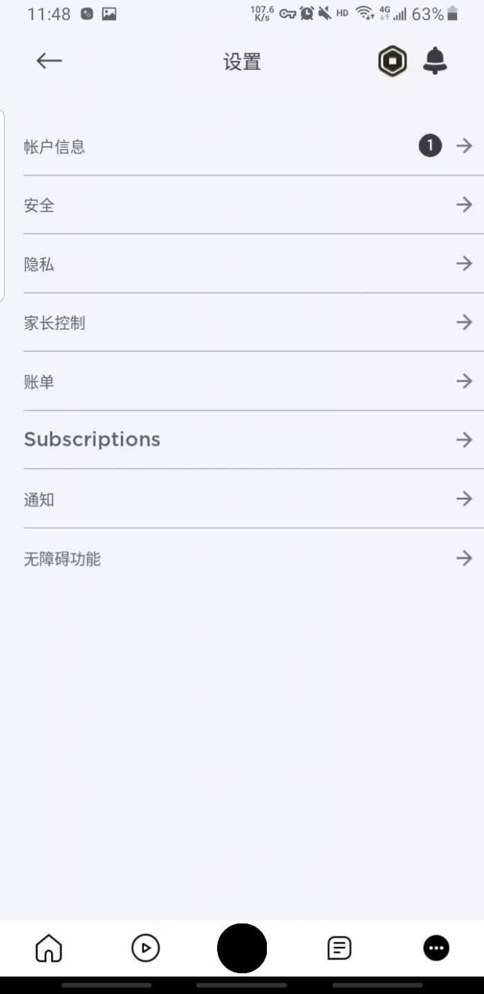 3、点击进入设置界面点击第一个account info(账户信息)右边的箭头。