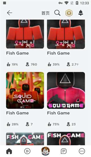 4、鱿鱼游戏目前最受欢迎的有两个模式:“Fish game“和“Squid game”。