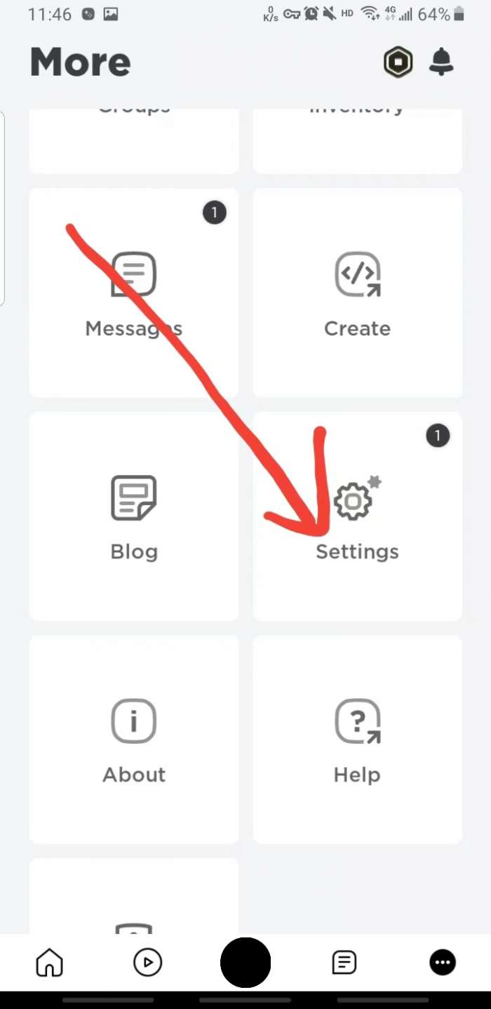 1、进去roblox罗布乐思你会发现都是默认英文,登陆进去之后找到右下方三个点,点击进入下一步。