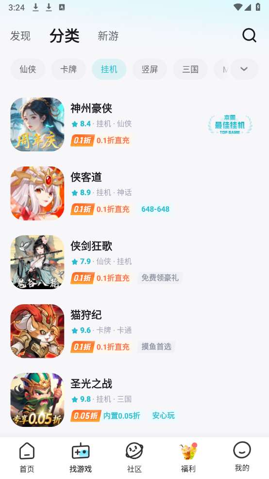 2、进入首页以及找游戏页面,汇集了超级多的游戏资源,包括仙侠、射击以及三国等。
