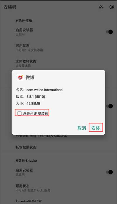 3、选择要安装的软件,然后单击确认。勾选此框以始终允许“安装狮”。点击“安装”,等待安装进度条完全加载。