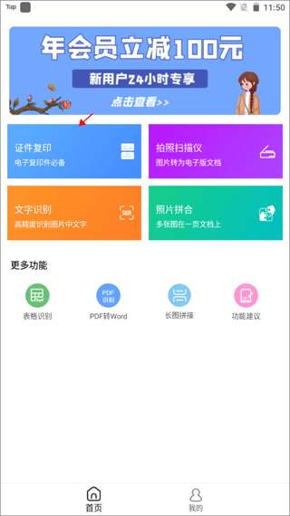1、打开并进入软件首页,点击上方的“证件复印”功能按钮。