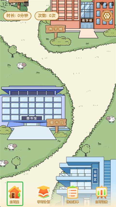 1、下载进入软件,用户可以下滑选择自习场景,有教学楼、图书馆、在职区、私人自习室。