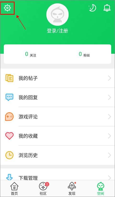 1、打开葫芦侠3楼,点击右下角的“空间”,然后点击右上角的设置按钮。