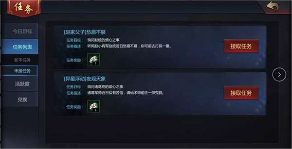 了解每日任务之后,就要带大家来看看任务列表啦~而在任务列表中,是一些包括新手任务在内的主支线任务,点击接取任务或者前往,就能收到任务引导。