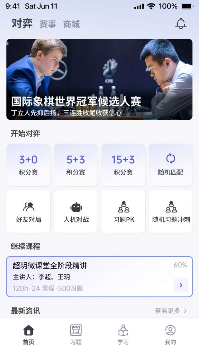 支持棋力测评和定制每日学习计划等个性化学习板块;