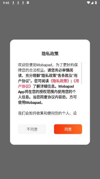 1、在本站下载魔派MOBAPAD,同意用户协议。