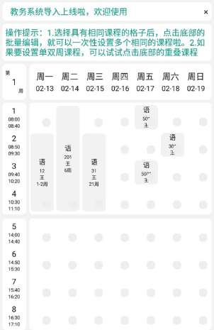 4、多周视图:清晰显示复杂的课程安排情况,如单周、双周和假期课程调整。