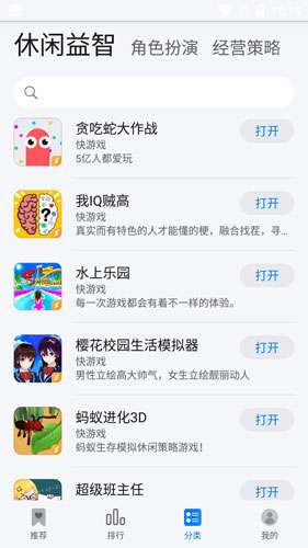4、排名搜索分类:该软件提供排名、搜索和分类功能,让玩家快速找到自己喜欢的游戏。