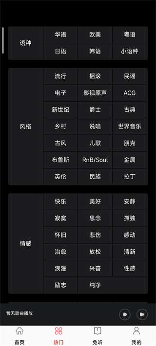 2、点击热门,这里你可以选择你喜欢听的类型。