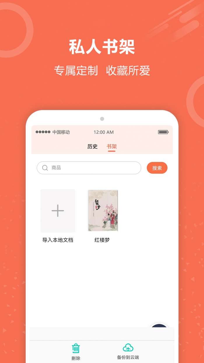 3、流畅阅读、进度跳转、书签收藏、自动记忆阅读位置。