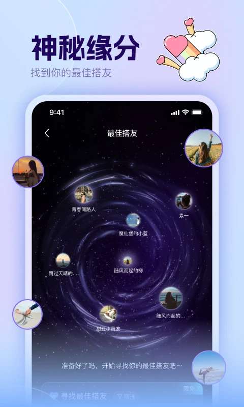 2.最佳伴侣:通过智能缘分匹配功能,快速找到最佳伴侣,自由聊天互动,更方便找朋友。