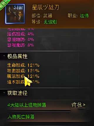 5、星辰战刃这个武器目前也是可以达到高品质的,在游戏当中使用这个武器的话,后期最多是可以增加各项属性到120%的数值,可以说在目前这么多的武器效果当中,星辰战刃绝对是排名都能够排上前几名的,武器强度的上下限都很高,后期大家可以提升它达到至尊的等级,而且本身这个武器效果好的情况下,在掉落的概率上面也不是很大,所以大家如果想要获取的话,去刷怪的时候要多找一些高等级的怪物,而且掉落的地点是比较固定的,这个就需要大家去多多碰运气了。