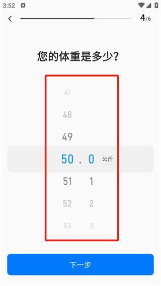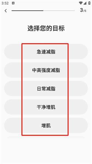 2、总共需要回答六道问题,包括用户性别、年龄以及期望的健康目标。
