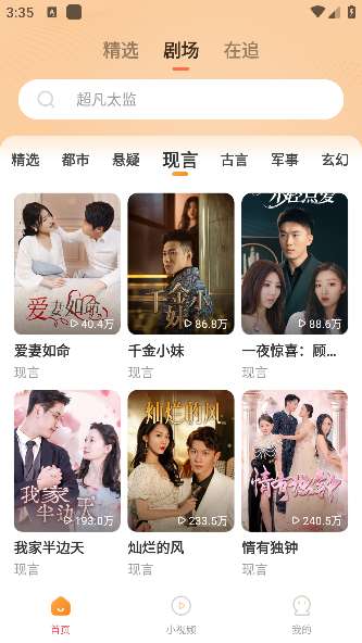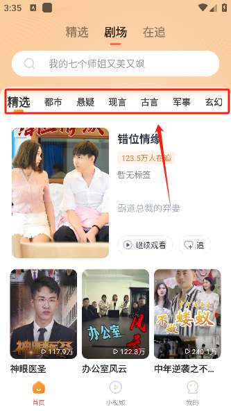 1、打开软件,点击首页顶部剧场,可以看到许多短剧。