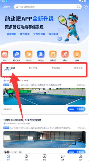 韵动吧是一款热门的网球运动社区软件,拥有全新的首页设计,用户可以直接进入来搜索查找当前城市的网球场地,随时随地在线预订,自由享受优质的运动服务,还能实时更新各种运动活动,允许用户自由选择参加来寻找运动搭子,轻松提升运动兴趣,能完全满足所有使用需求,还提供全面的运动社区,用户可以自由选择加入各种运动,自由体验精彩的运动锻炼过程,还能轻松咨询客服,轻松帮助用户解决各种问题。