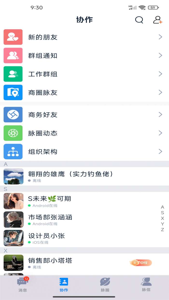 脉信是一款极具实用性的商务办公软件,其功能丰富多样,全面覆盖了协作、办公、知识管理以及商务拓展等多个领域。用户借助脉信这款软件,能够享受到极为灵活的办公方式,无论身处何时何地,都能高效完成工作任务。不仅如此,脉信APP还为用户搭建了一个拓展人脉的优质平台,有需要的用户现在就来本站下载体验吧!