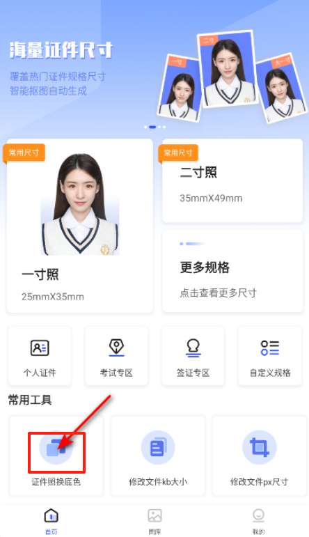 1、打开软件,选择更改身份证照片背景颜色的功能。