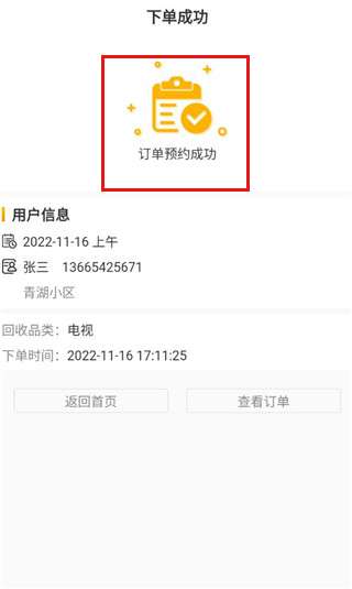 2、填好回收品类、个人信息、预约时间后点击提交订单。