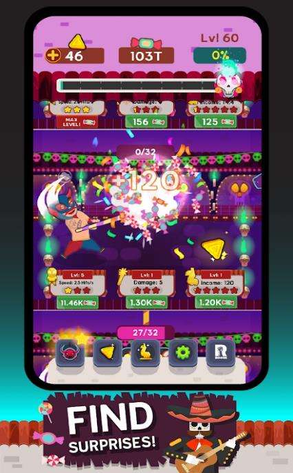 皮纳塔惩罚者在这款游戏中,大家的主要任务就是控制角色去打破皮纳塔,这是比架古老的一种游戏,它是用木制以及不同的彩色纸条制作的,中间则放置着一些零食或者是糖果。这种东西一般都是在庆祝的时候才会拿出来,让大家一起对他进行击打,然后让里面的糖果全部掉落出来。