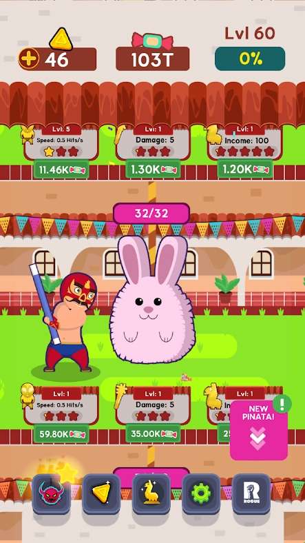 1、选择好角色,让他拿不同的工具,对皮纳塔进行锤击就可以了,可以对每个角色进行升级,也可以对皮纳塔进行升级。