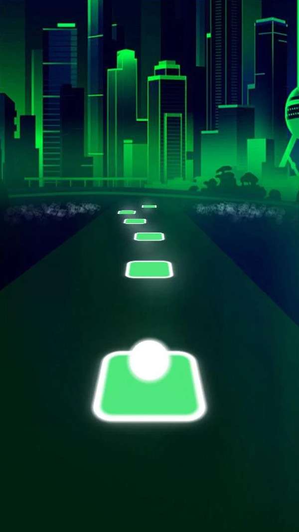 1、就像是在玩,别踩白块一样,不过这里的则是点击自己的圆球进行跳跃,左右滑动控制方向来完成方块通道的跳跃还有前进。