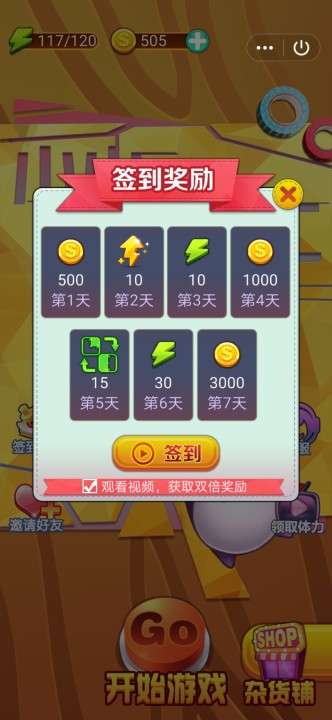 1、记得完成每天的签到打开在这里是有机会获得一些道具还有能量跟金币;