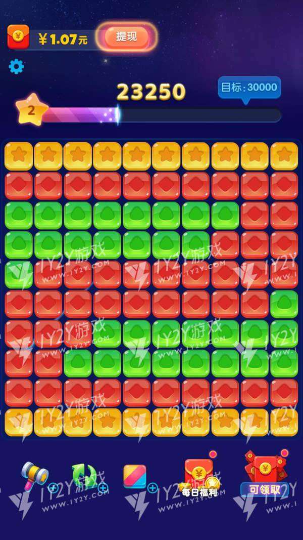 4、可以用锤子道具去掉不想要的方块,让尽可能多的方块凑在一起获取最大分数。