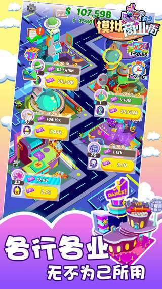 模拟商业街是一个商业模拟经营游戏。玩家将从零开始逐步建立自己的商业帝国,甚至要把商铺开到火星上去。