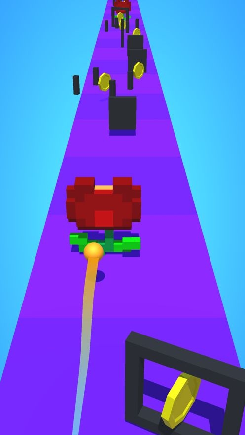 1、每个关卡中都会出现一些新的通道,完成收集金币的过程中,你还要去躲避黑色物体,并撞击一些可以获得加分的道具;