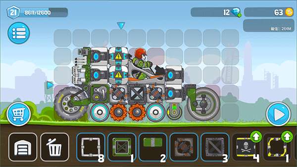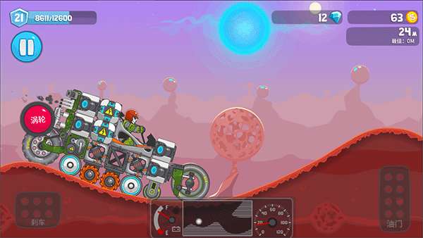 4、游戏的操作非常简单,玩法类似于登山赛车,如果车头翘起玩家就按住刹车。