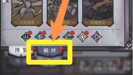 2、接着在图鉴页面,点击左下角的羁绊选项