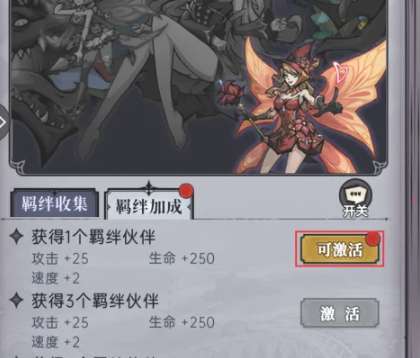 3、最后点击可激活的图册,在羁绊加成中点击可激活按钮即可