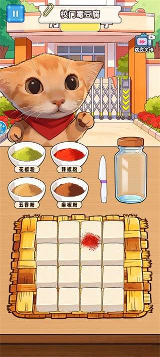 霉豆腐摆摊游戏中,玩家化身霉豆腐摊主,从一张简陋的折叠桌、几口陶罐起步,逐步打造属于自己的美食摊位。清晨采购新鲜豆腐,午后调配秘制卤水,傍晚迎接络绎不绝的食客——游戏通过细腻的动态场景还原了摆摊的全流程。更有趣的是,顾客并非千篇一律的NPC,而是由萌系小动物和经典猫咪meme形象组成的“吃货天团”:圆滚滚的柴犬叼着饭盆等待投喂,傲娇的布偶猫用尾巴圈出定制要求,甚至还有戴着墨镜的酷企鹅举着“多辣多香菜”的牌子……玩家需要根据它们的特殊需求调整霉豆腐的辣度、软硬度或配料组合,将一块块毛茸茸、白胖胖的霉豆腐精心装盒,看着它们心满意足地离开,成就感油然而生。