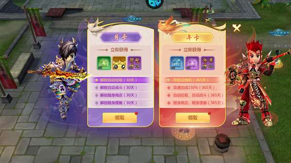 2、然后,我们进入游戏中可以免费领取到月卡、年卡等一系列奖励,能够很好的降低了游戏氪金度。