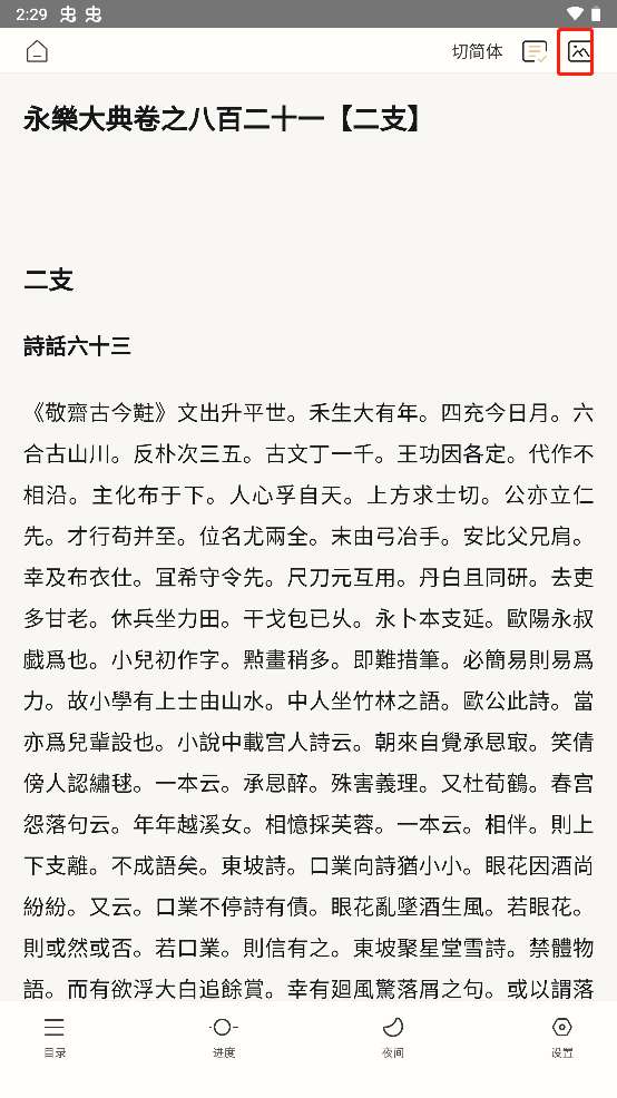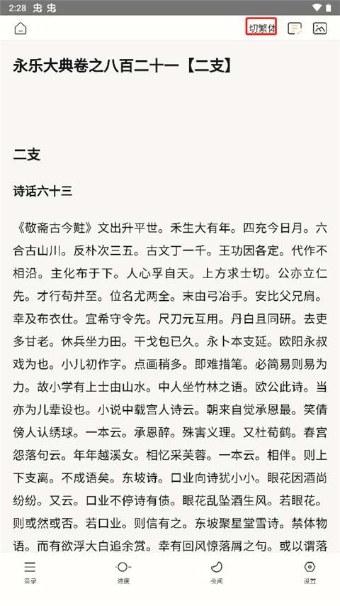 5、点击屏幕,呼出功能栏,里面还支持繁体阅读,点击切换繁体即可。