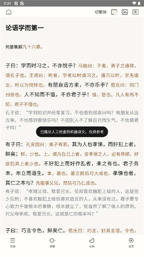 3、用户可以获取到每一本古籍的译文内容,通过翻译后的文章进行阅读更容易理解书籍。