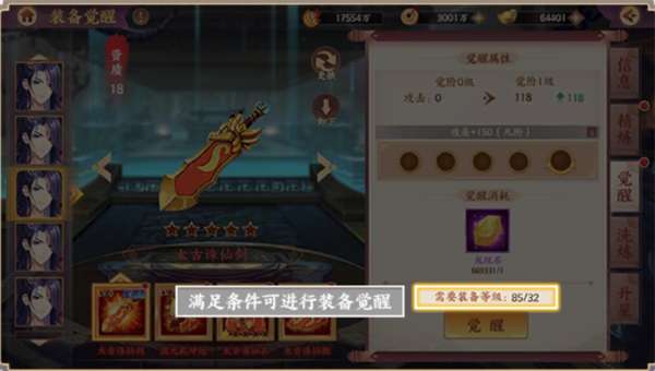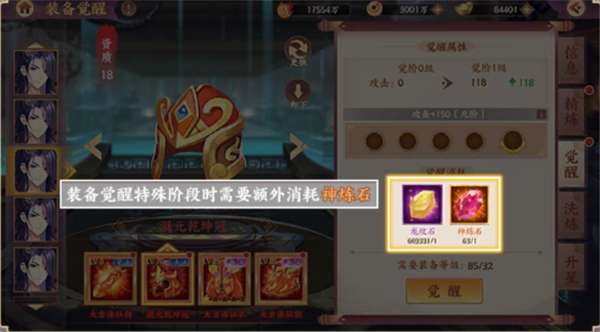 4、装备觉醒特殊阶段时需要额外消耗神炼石。