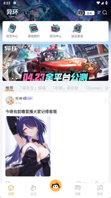 1、在手机中打开异环社区软件进入。