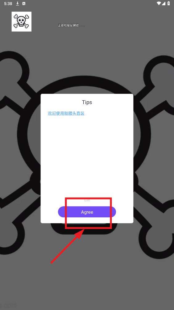 在跳转到应用进入界面时,同意协议提醒点击【agree】正式进入软件。