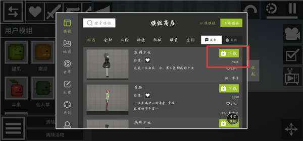 3、这里有人物、服装、生物等模组,选择想要的模组,点击【下载】。