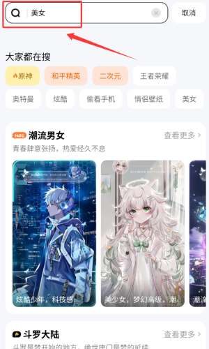 3、搜索美女并查看推荐的热门标签。