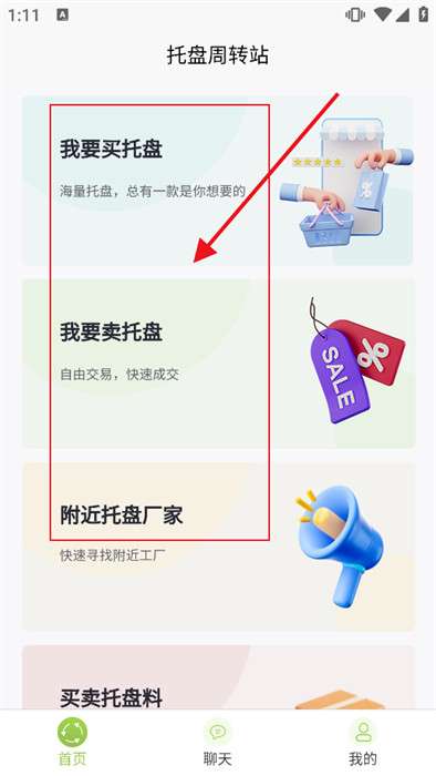 2、随后,就能在首页上看到多个项目,如出售厂商、发布帖子等等,点击第一项,购买木托;