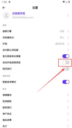4、勾选“自动开启语音阅读”选项,以便该功能在使用时自动启用,提升您的体验。